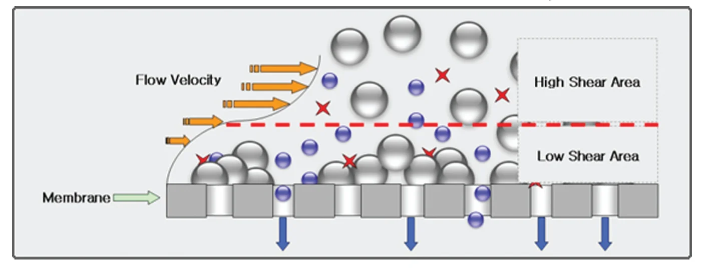 FMX is a next generation membrane filtration system that utilizes the Karman Vortex Theory to effectively achieve anti-fouling. The rotating blades between the membrane surfaces generate vortices that prevent solids from building up on the membrane surface. This prevents membrane fouling so effectively that FMX can handle high total dissolved and suspended solids, over 1.5%, without fouling issues.